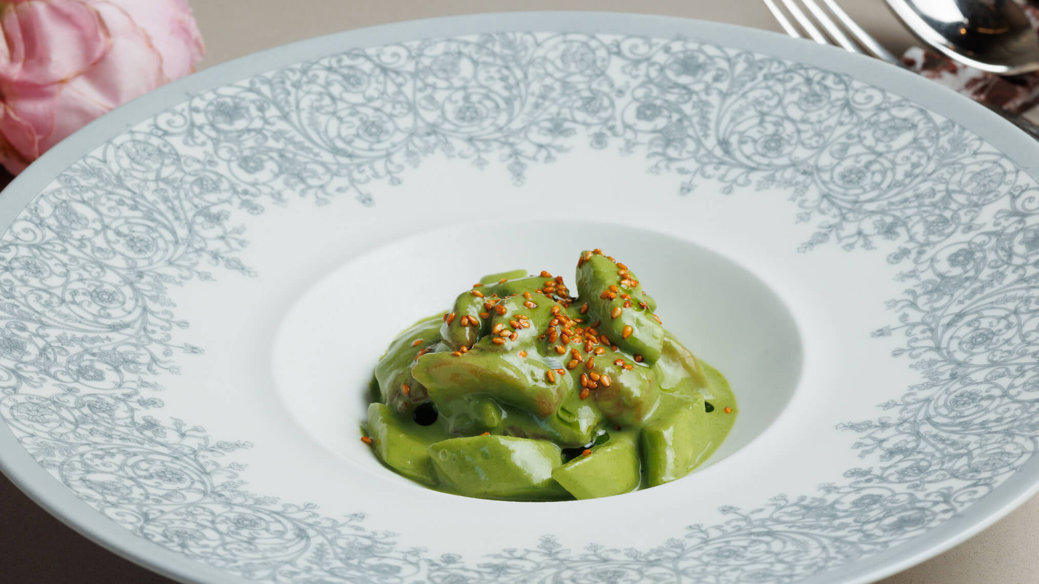 Специально для TANK Gourmet шеф-повар ресторана Алексей Алексеев разработал сет-меню, вдохновленное идеологией бренда. В его основе – сочетание противоположностей и необычных кулинарных решений. «Мы создали сет, основываясь на игре и сочетании различных текстур и ярких вкусов с акцентом на азиатские мотивы в каждом блюде», – отметил он.